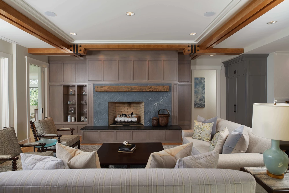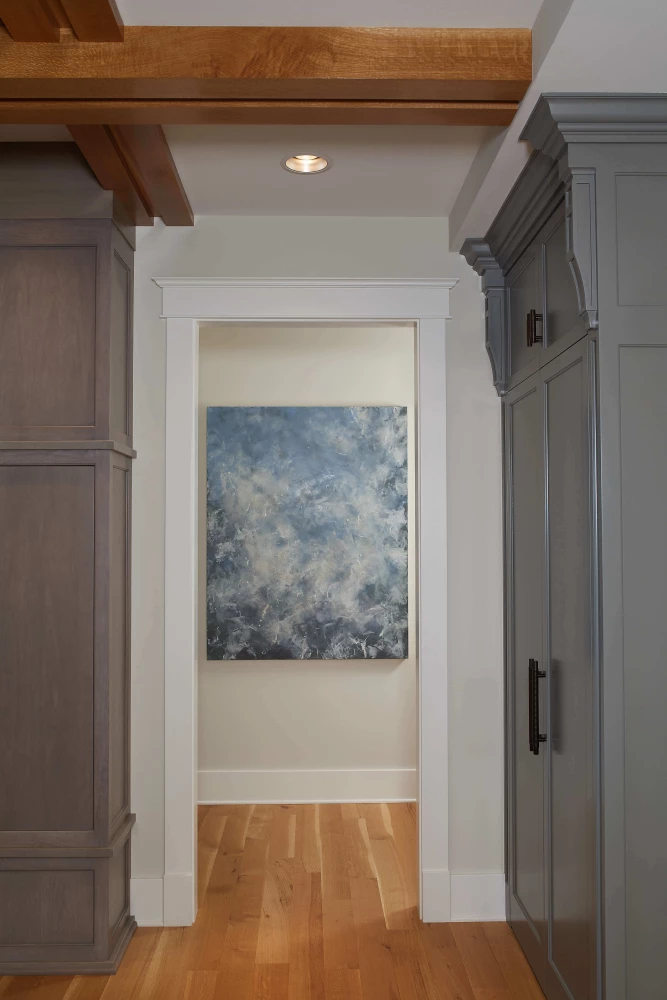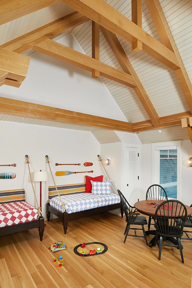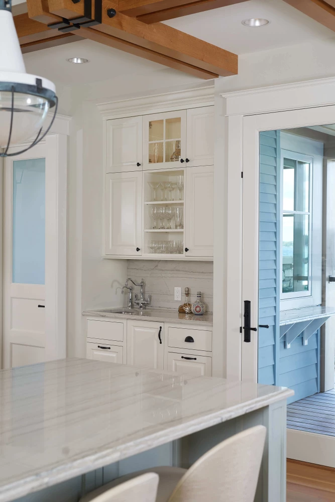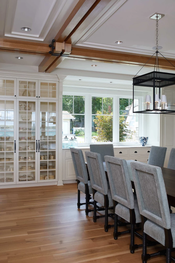 Incorporating my Japanese design heritage, the home features traditional beams alongside bright colors and natural materials, blending the elegance of Japanese aesthetics with the inviting charm of lakeside cottage style. Collaborating with a construction firm from Grand Rapids, we aimed to craft a home that harmonizes with its lush surroundings while exuding dignity and warmth.