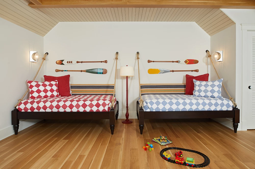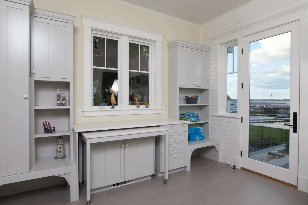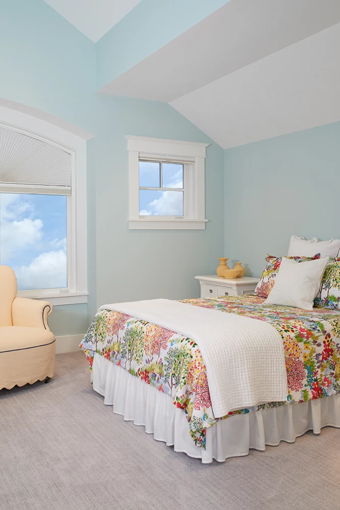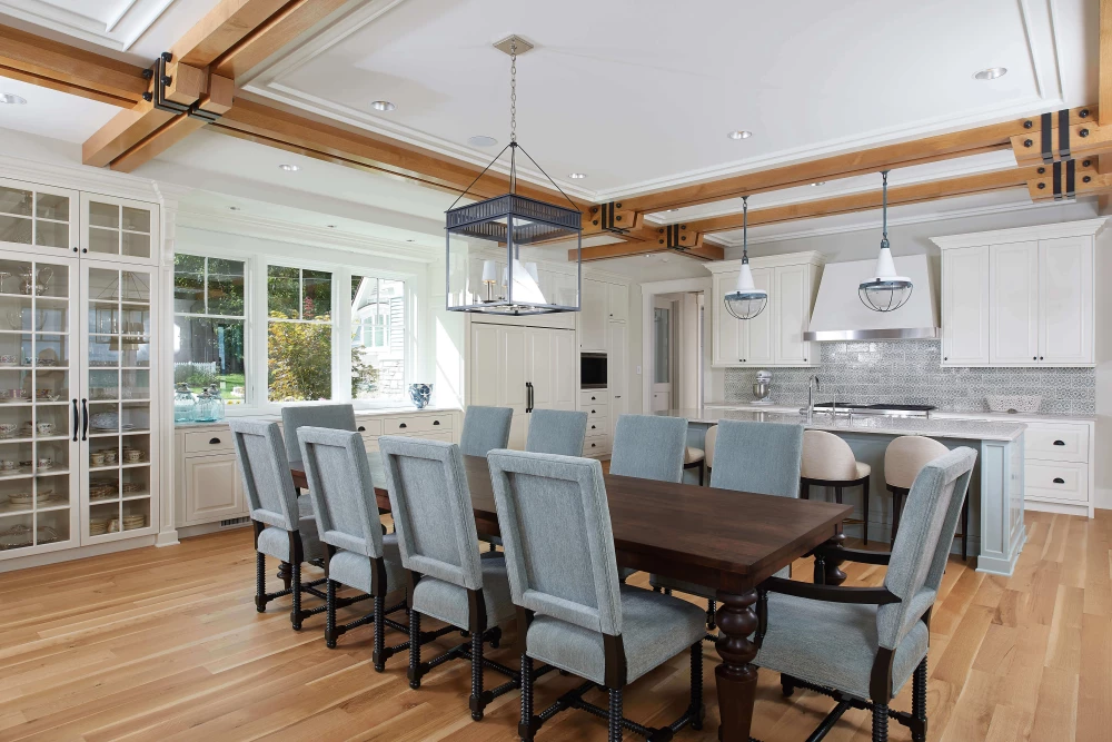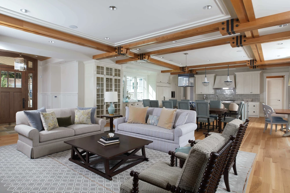 Incorporating my Japanese design heritage, the home features traditional beams alongside bright colors and natural materials, blending the elegance of Japanese aesthetics with the inviting charm of lakeside cottage style. Collaborating with a construction firm from Grand Rapids, we aimed to craft a home that harmonizes with its lush surroundings while exuding dignity and warmth.