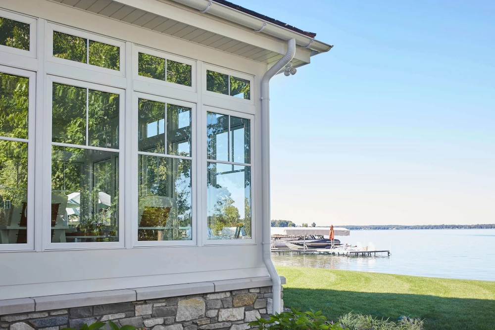 Nestled along the serene waters of Gull Lake in Richland, MI, this lakeside retreat was designed to be the ultimate sanctuary for its owners. Surrounded by picturesque vacation homes, this residence replaced two demolished houses with a thoughtfully crafted space that seamlessly integrates comfort, accessibility, and natural beauty. The main house spans approximately 8,000 square feet, complemented by a 1,090-square-foot guest home, creating a harmonious balance between intimate living and spacious gathering areas.