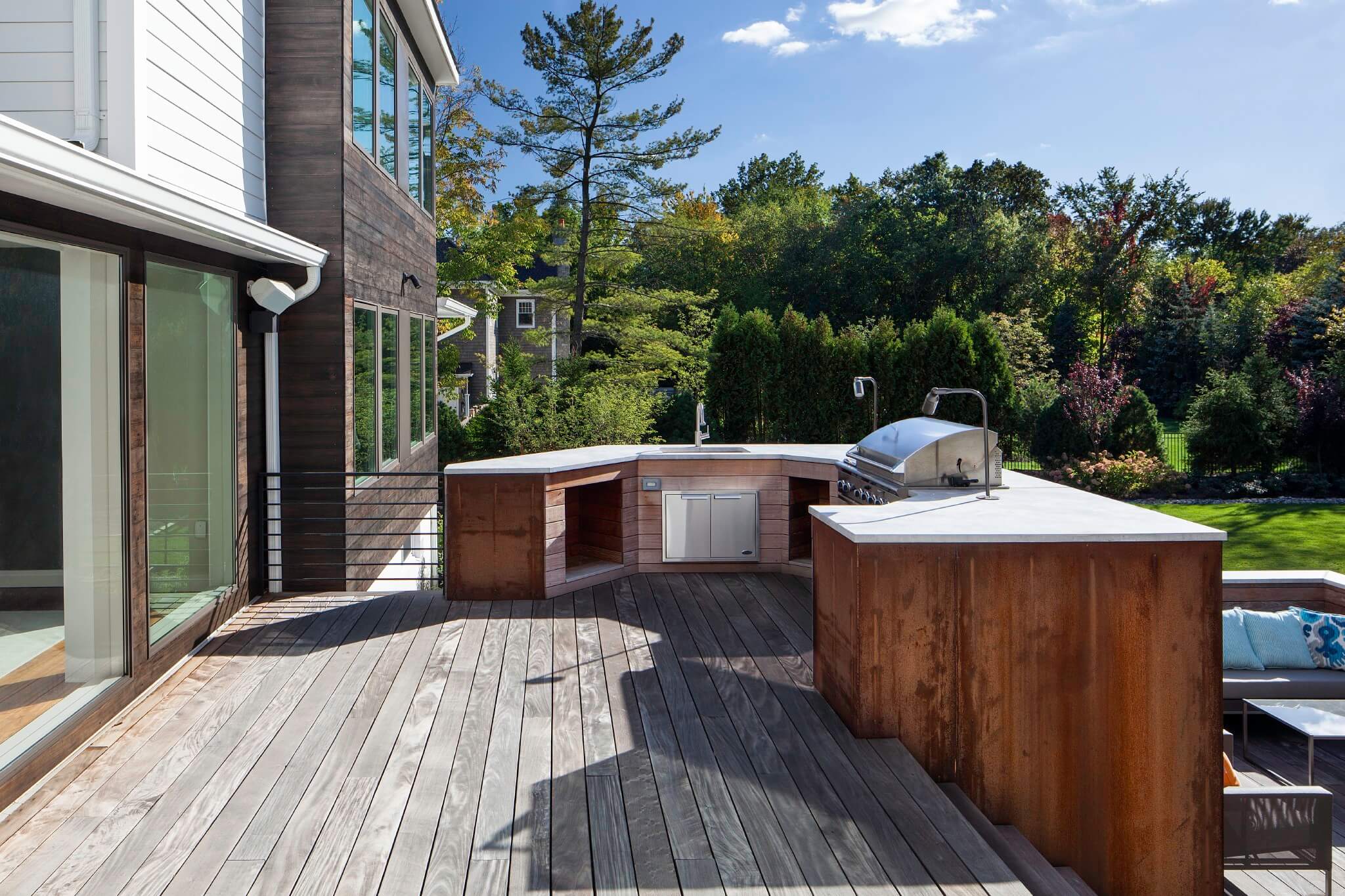 At the heart of the home is a Henrybuilt kitchen, featuring high-performance materials and handcrafted details that balance function with elegance. A thoughtfully curated material palette of warm natural walnut and locally sourced concrete reflects both sustainability and authenticity, infusing the space with character and understated sophistication.