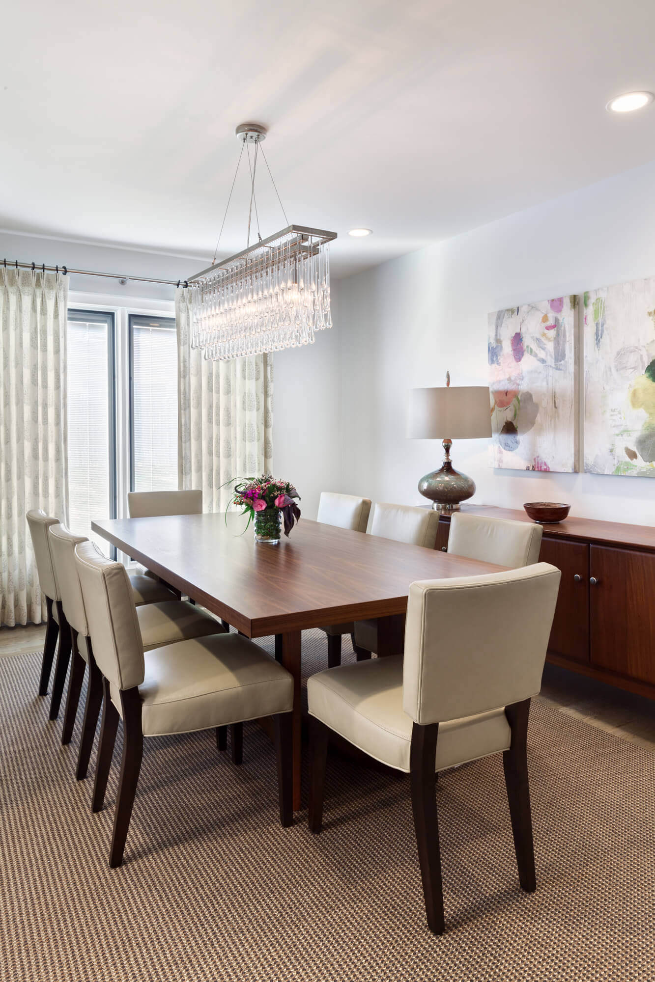 Bringing in natural light was a key priority. A large, translucent sliding door from the foyer floods the home with sunlight, transforming previously dim, enclosed spaces into bright, open environments that feel both expansive and warm. Custom pieces, such as the American walnut entertainment unit and dining table, seamlessly blend natural materials with cultural motifs, anchoring the design in timeless elegance and personal meaning.