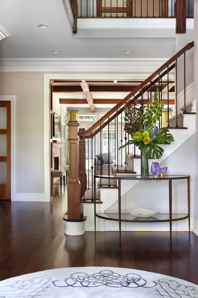 In this Princeton, NJ residence, YZDA aimed to craft an elegant and glamorous living space that also provides comfort and ease for a busy professional couple. The design features a careful layering of tonal colors, textured fabrics, and custom furniture profiles that blend sophistication with a sense of relaxation. The color palette centers around soft blue-greens and warm and cool beige-greys, with pearlescent accents that add a subtle yet unmistakable touch of luxury, creating an atmosphere that feels both refined and inviting.