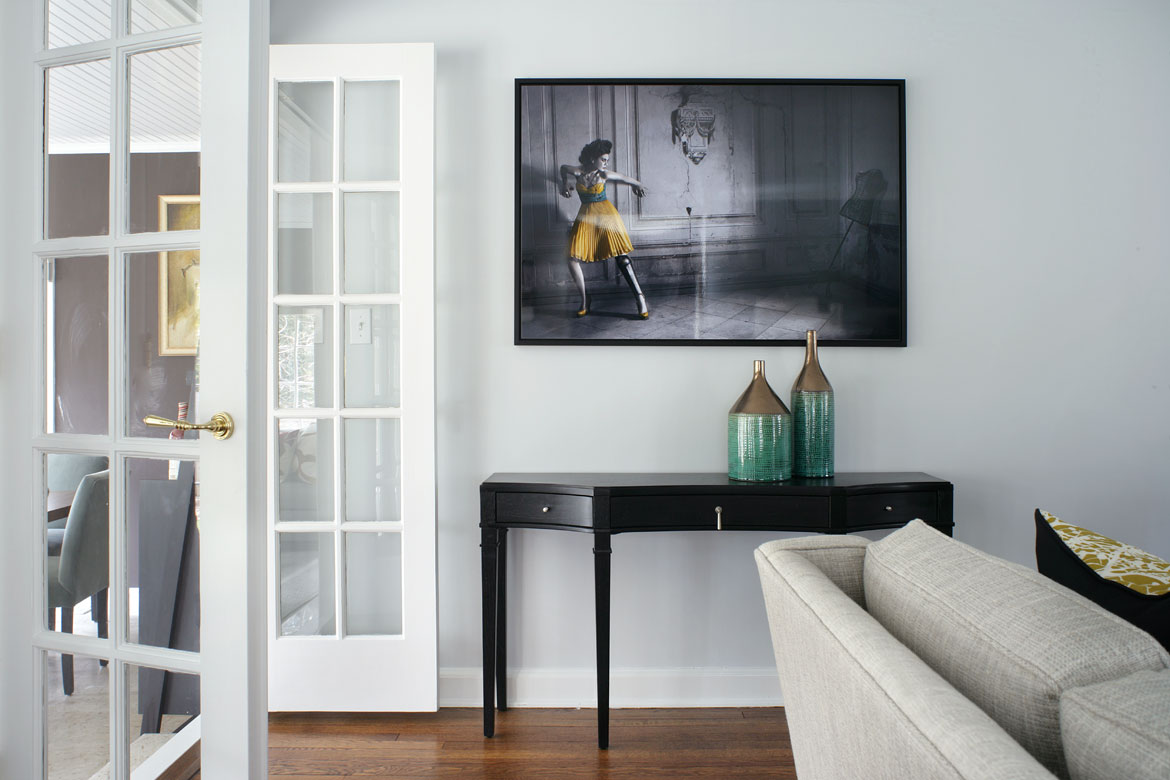 それまでのニューヨークライフスタイルのような洗練されたクラッシック感が、これからの郊外でのくつろぎの生活に融合する。美しい避暑地のような環境のショートヒルズのこの住宅は、マンハッタンでの生活から新しく郊外での生活に移る夫婦のためにデザインされたものです。2人の幼い子供達のために使用する素材は特に考慮し、楽しく実用的な空間を創るとともに、リラックスして楽しめる洗練されたお部屋を実現しました。空間を優美ですっきりとさせ、それぞれの部屋にアクセントカラーを使いつつ、寒色系中間色のパレットを中心とした、モダンで魅力的な家を創りあげることができました。